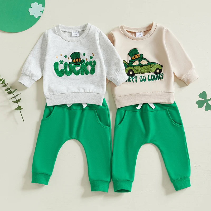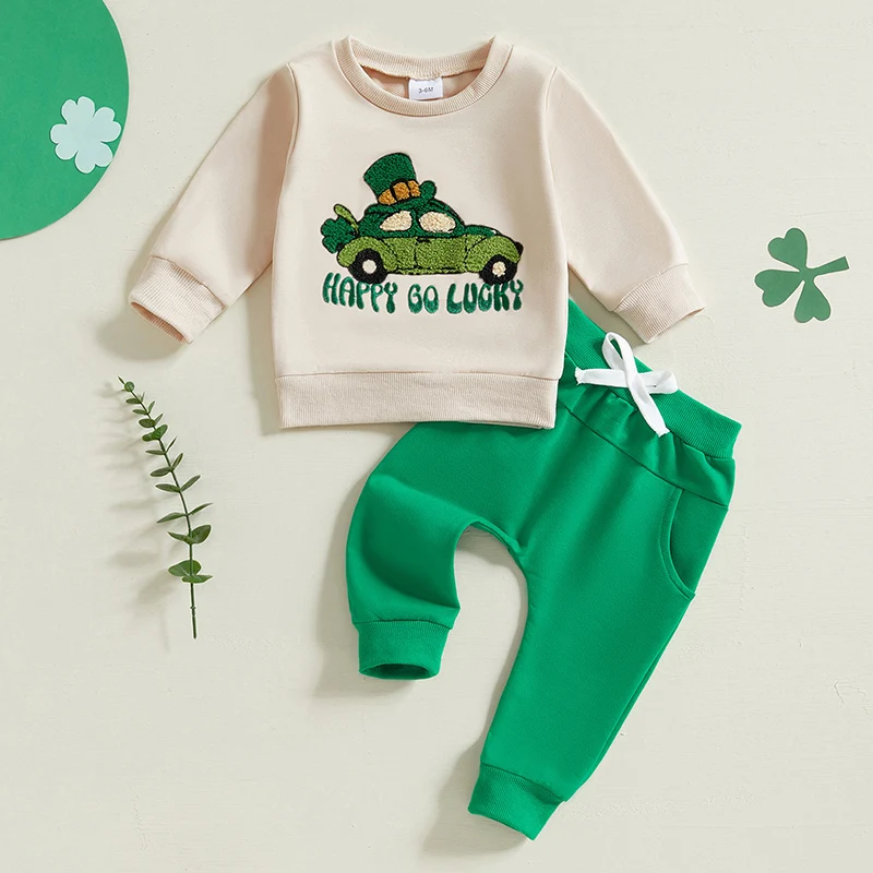 Baby Irish Day Outfit Car/Letter Embroidery Long Sleeve Sweatshirt and Elastic Pants Set for Newborn Infant ClothesFeatures